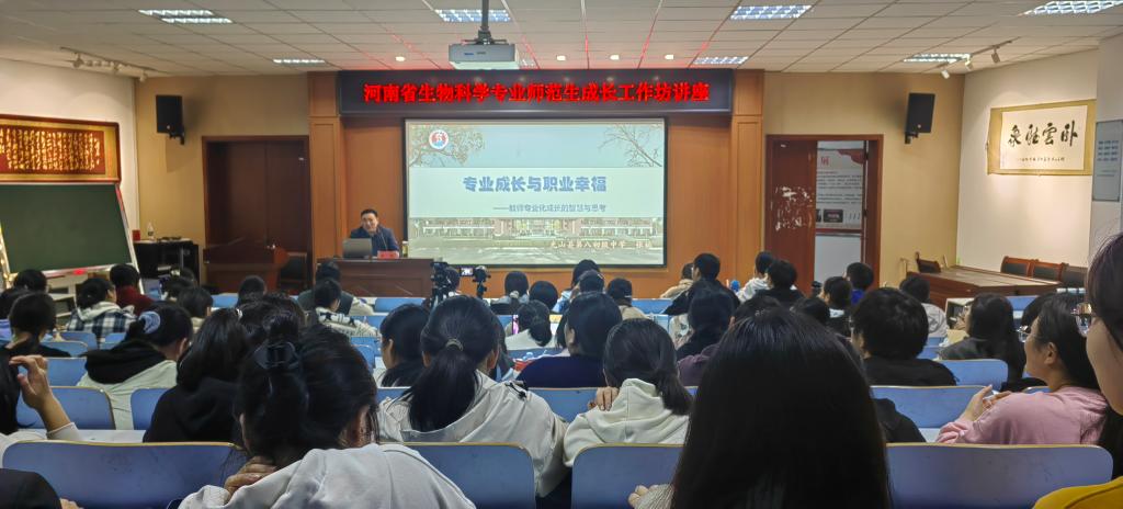 为进一步提升我院“名师引领——河南省生物科学专业师范生成长工作坊”生物科学专业师范生的专业素养,11月14日晚,河南省中小学名校长、光山县第八初级中学校长张楠在生物楼414作了主题为“专业成长与职业幸福——教师专业化成长的智慧与思考”的讲座,与众多师范生共同探讨教师专业化成长的重要议题。本次活动由彭波副院长主持活动。
