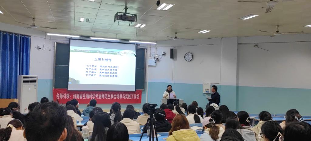 饶本强院长在总结发言中,感谢周竹老师为河南省生物科学专业师范生成长工作坊奉上了一堂名师引领与教育思想的精神大餐,同时指出这场讲座也是一次生动的课程思政课和励志报告。他鼓励工作坊同学们要以周竹老师为榜样,不断学习,勇于创新,努力提升自己的专业素养,期望他们能够成为未来教育界的卓越教师和教育家,为国家教育事业的发展贡献智慧和力量。本次工作坊开展的名师讲座使同学们深受启发,纷纷表示将以更大的热情投入到学习和实践中,为成为一名优秀的人民教师而努力。