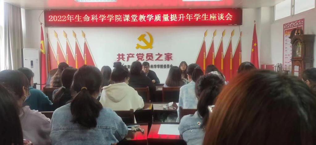 为了倾听学生的心声,了解学生的需求,进一步提升学院本科教学质量,5月12日中午,我院在生科楼412会议室召开2022年太阳成集团122ccvip课堂教学质量提升年学生座谈会,教学副院长荆胜利、教学秘书胡月及各班级学生代表参加本次会议。本次座谈会由胡月老师主持。