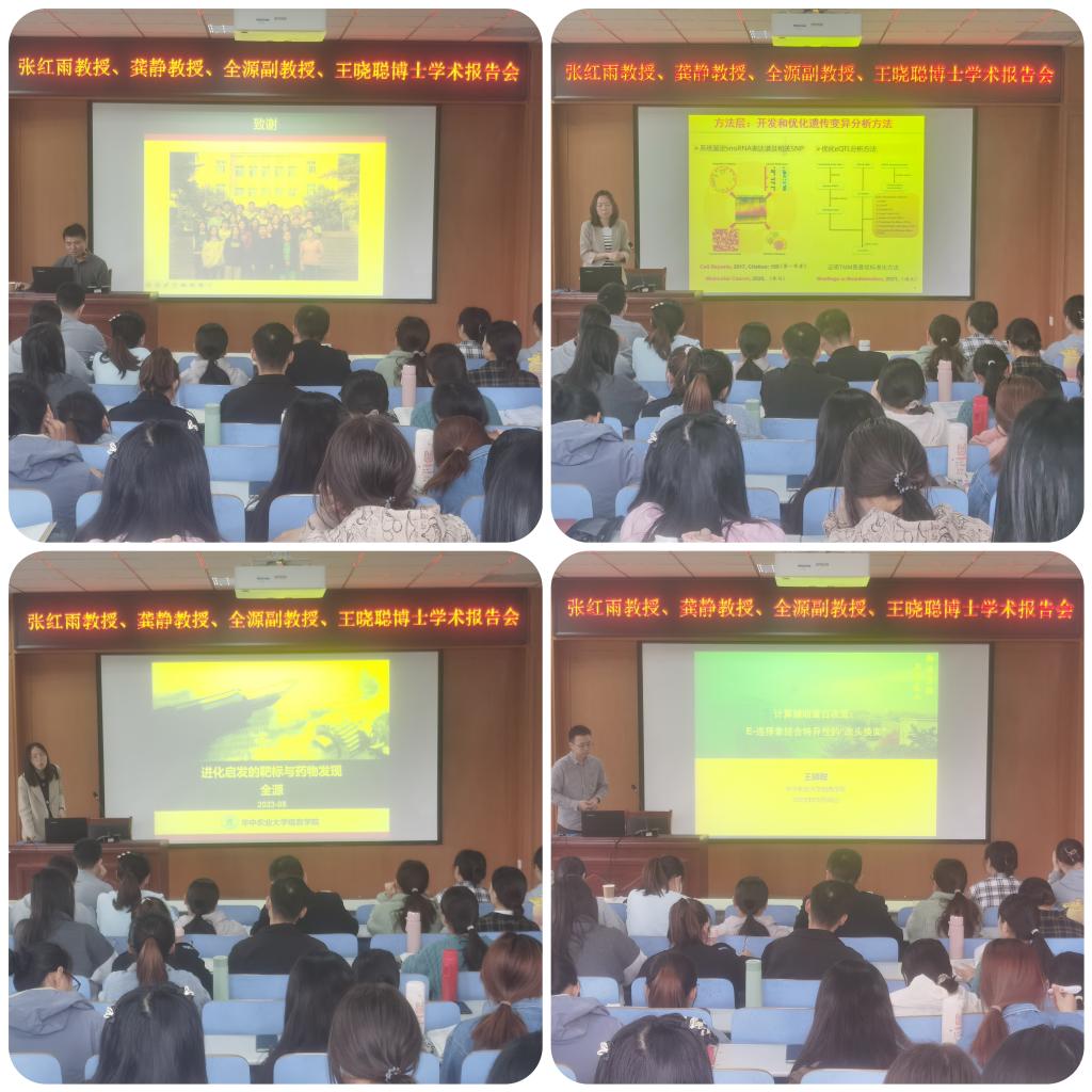 5月6日,应太阳成集团122ccvip邀请,华中农业大学信息学院院长张红雨教授以及龚静教授、全源副教授、王晓聪博士在生物楼钟秀讲堂为师生做学术报告,生科院部分教师及学生140余人聆听了报告会。报告会由该院院长饶本强教授主持。