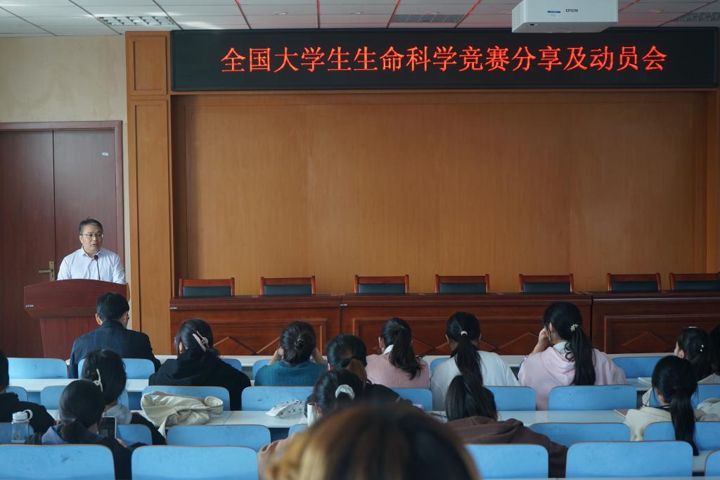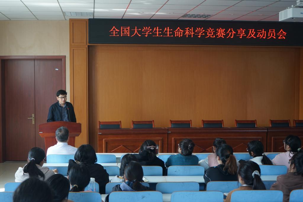 为了激励大学生勇于参加全国大学生生命科学竞赛,提高其积极性,做好竞赛计划,提高科学素养和实践能力,了解生命科学领域的最新进展。我院于10月20日中午在生科楼414报告厅举行了全国大学生生命科学竞赛分享及动员会。此次会议由我院党委副书记荣宪举主持,我院副院长荆胜利,优秀学生代表任奥博参加。