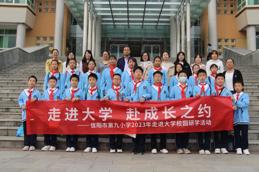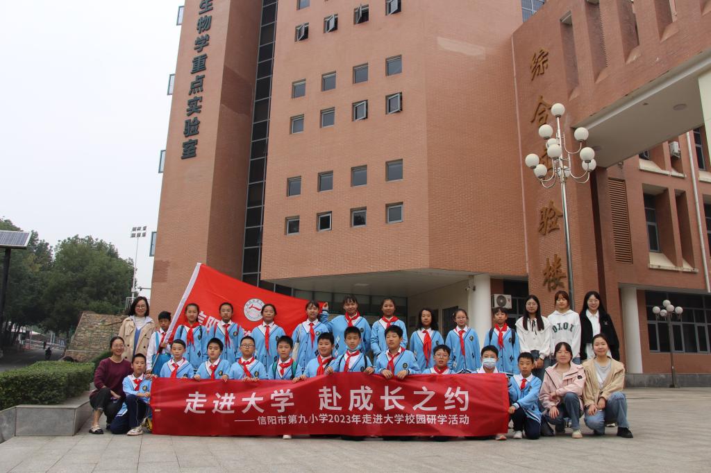 为全面贯彻党的二十大精神,促进基础教育与高等教育一体化高质量发展,提高中小学人才培养能力,提升大学生志愿服务意识,10月27日,受信阳市第九小学邀请,我院大学生志愿者在副院长荆胜利的带领下,助力信阳市第九小学开展“走进大学校园”研学活动,带领孩子们感受大学浓厚的文化教育和科研氛围。