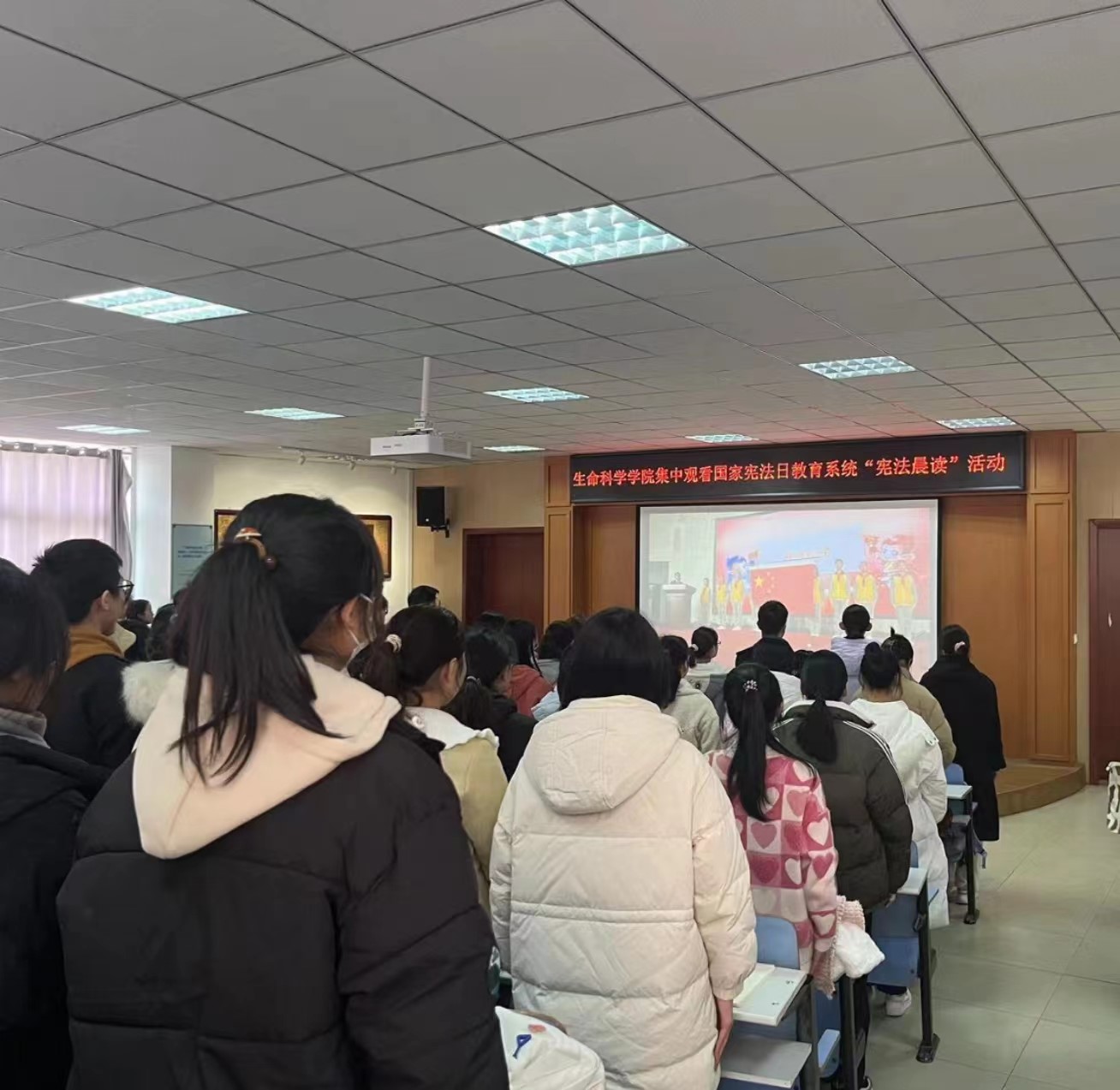 为了进一步普及宪法知识,弘扬宪法精神,推动大学生宪法宣传教育,12月4日国家宪法日上午,我院于太阳成集团122ccvip414报告厅集中观看国家宪法日教育系统“宪法晨读”活动。2023年下半年拟发展对象、入党积极分子及2023级部分同学参加此次活动。