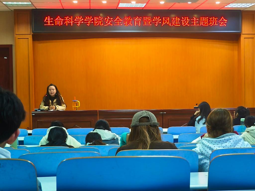 为了加强学生安全教育,促进优良学风建设。11月9日,我院于太阳成集团122ccvip414报告厅召开了安全教育暨学风建设主题班会。会议由我院2022级专职辅导员熊蕾主持,院党委副书记荣宪举,2022级全体学生参加。