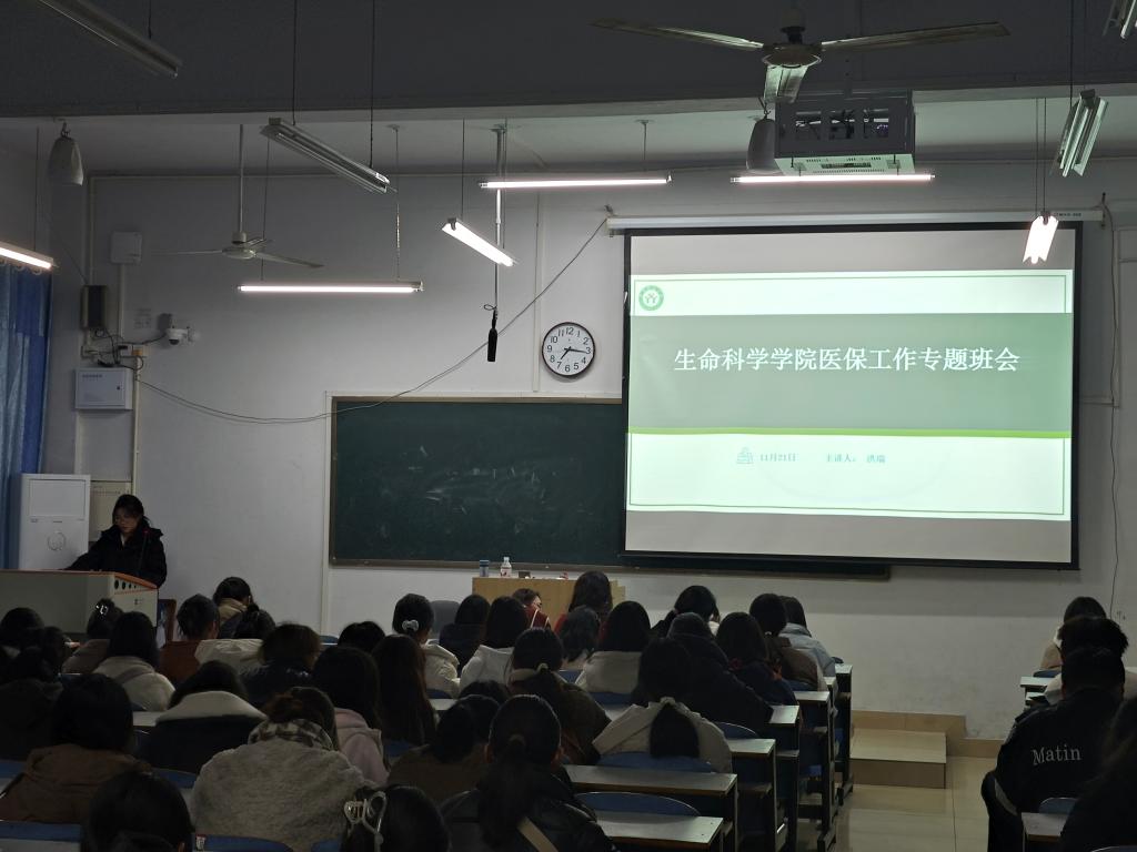 为帮助学生全面了解国家医保政策,增强健康保障意识。11月27日,我院召开主题班会宣讲医保政策,会议由2024级辅导员洪瑞主持,2024级生物制药班、生物技术班、生物信息班各班同学参加。