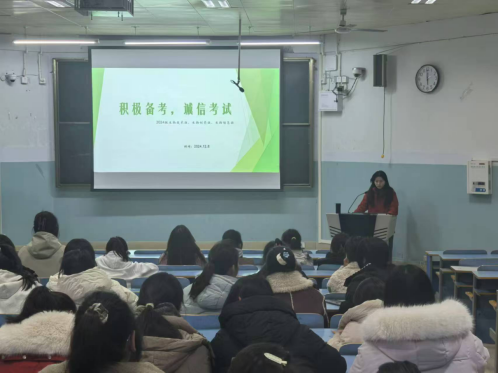 12 月 8 日,我院以“积极备考,诚信考试”为主题的班会在教九楼305成功举办。2024级辅导员洪瑞主讲,2024 级生物技术班、生物制药班和生物信息班的全体同学参加会议。