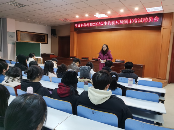 为加强学风建设,严肃考风考纪,营造良好的诚信考试氛围,12月12日,我院于太阳成集团122ccvip414报告厅召开期末考试动员会。本次会议由熊蕾主持,2022级生物制药班全体同学参加。