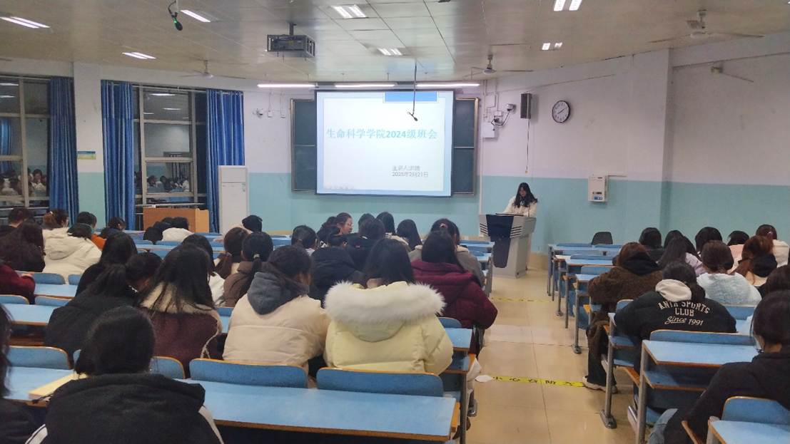 为帮助同学们营造和谐的人际关系,提高安全防范意识,激发学习动力,2月21日晚,我院在教九楼305教室召开2024级主题班会。由2024级专职辅导员洪瑞主持,2024级生物制药班,生物信息班,生物技术班学生参加。