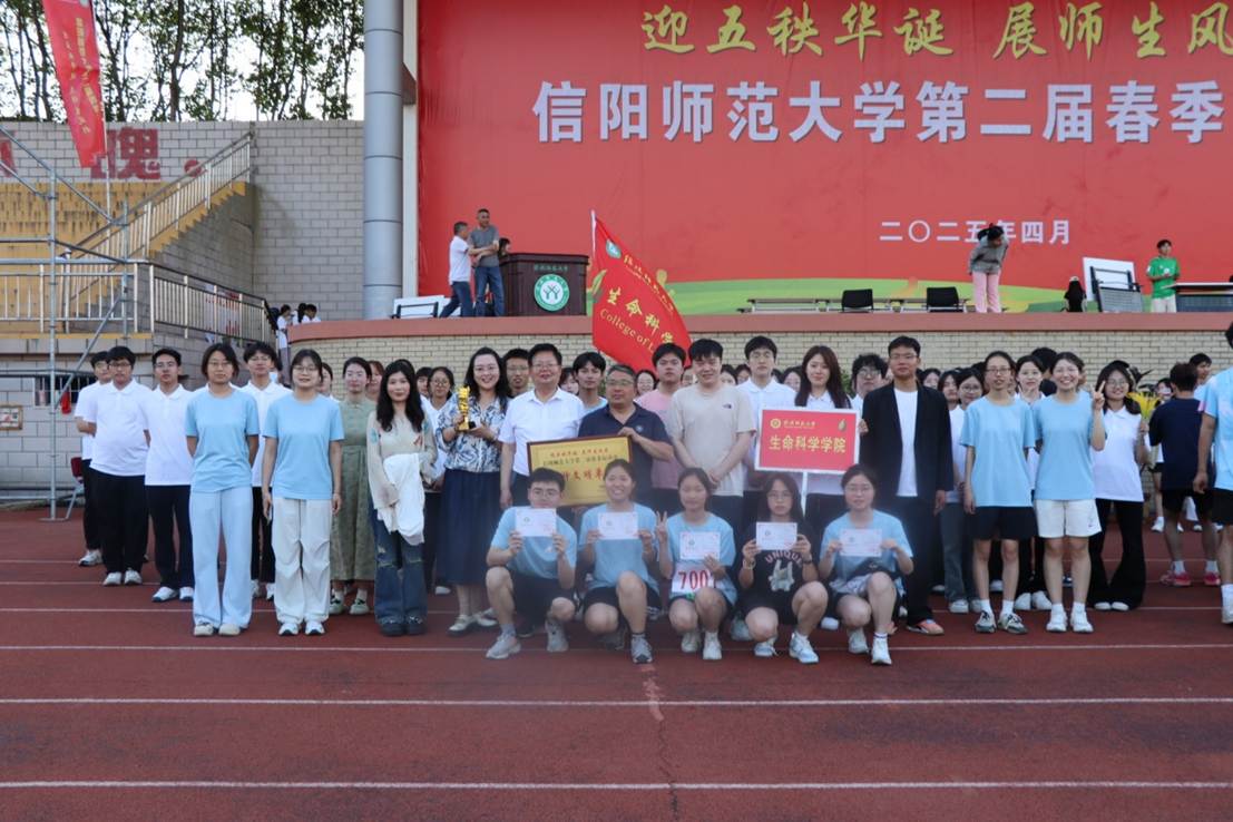 8点开幕式在全校师生的欢呼声中正式开始。面容严肃,身姿挺拔,国旗护卫队迈着铿锵有力的步伐,率先入场,各学院方阵依次入场,展现出独特的青春风采。我院方阵队列整齐,精神抖擞,带着“生命探源五十载薪火传薪火”的标语,用金黄的稻穗与响亮的口号展现探索精神,顺利地完成了方阵表演。我院党委书记李刚,院长饶本强,党委副书记荣宪举,专职辅导员熊蕾、张博、张阳阳等带领同学们加油助威,在全体师生的共同努力下,取得女子团体第六名好成绩,并获得精神文明单位。