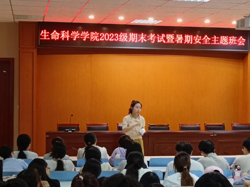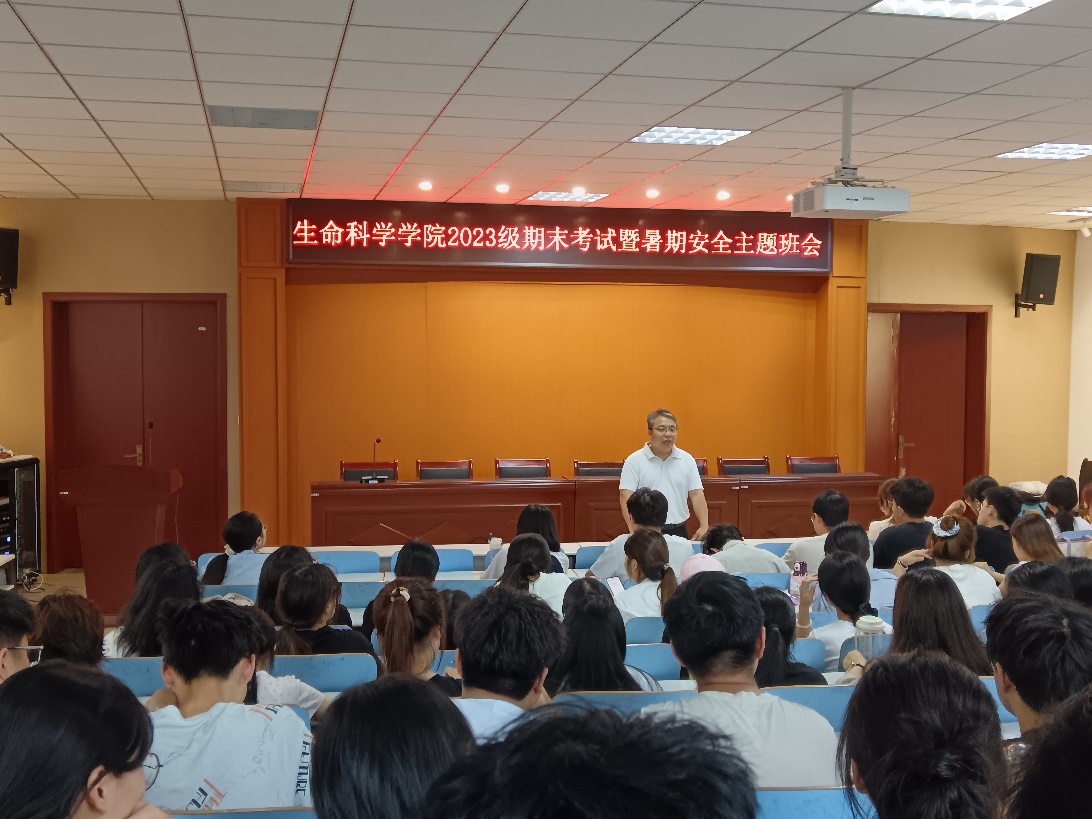6月13日,我院在太阳成集团122ccvip414报告厅召开2023级期末专题工作会,强调期末考试安排与暑假安全教育。学院党委副书记荣宪举、辅导员杨娟娟、2023级全体同学参加。
