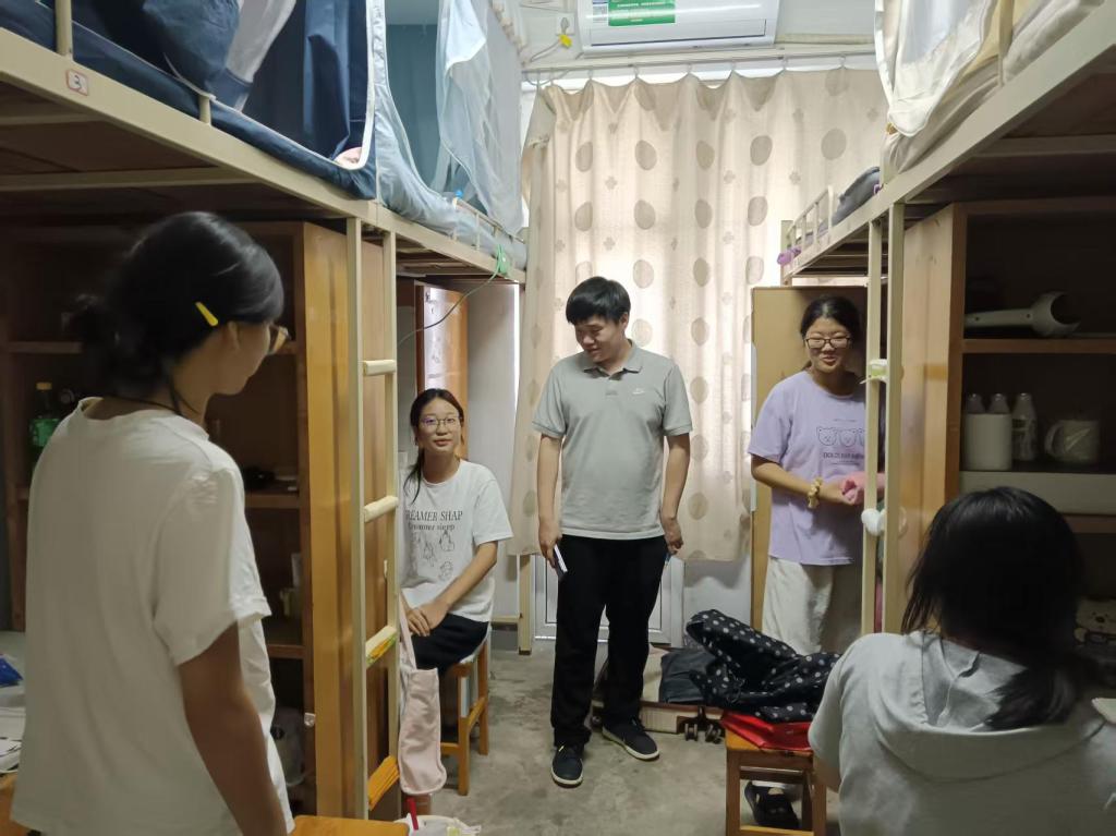 为深入了解2025级新生入学适应情况,帮助新生尽快融入校园生活,我院专职辅导员张博于9月6日深入新生宿舍,开展一次全面细致的走访及安全教育活动。