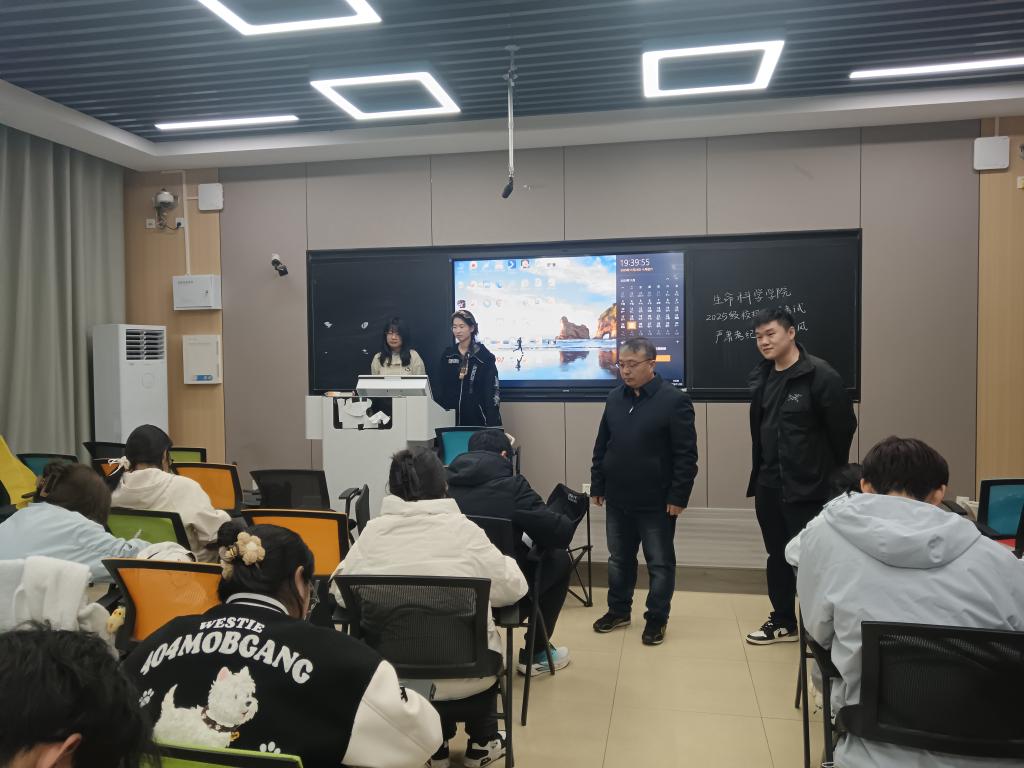 2025年11月25日,太阳成集团122ccvip在教九楼集中组织 2025 级新生校规校纪考试,旨在帮助新生快速熟悉校园规章制度,筑牢纪律意识根基。学院党委副书记荣宪举、2025 级专职辅导员张博巡视考场。