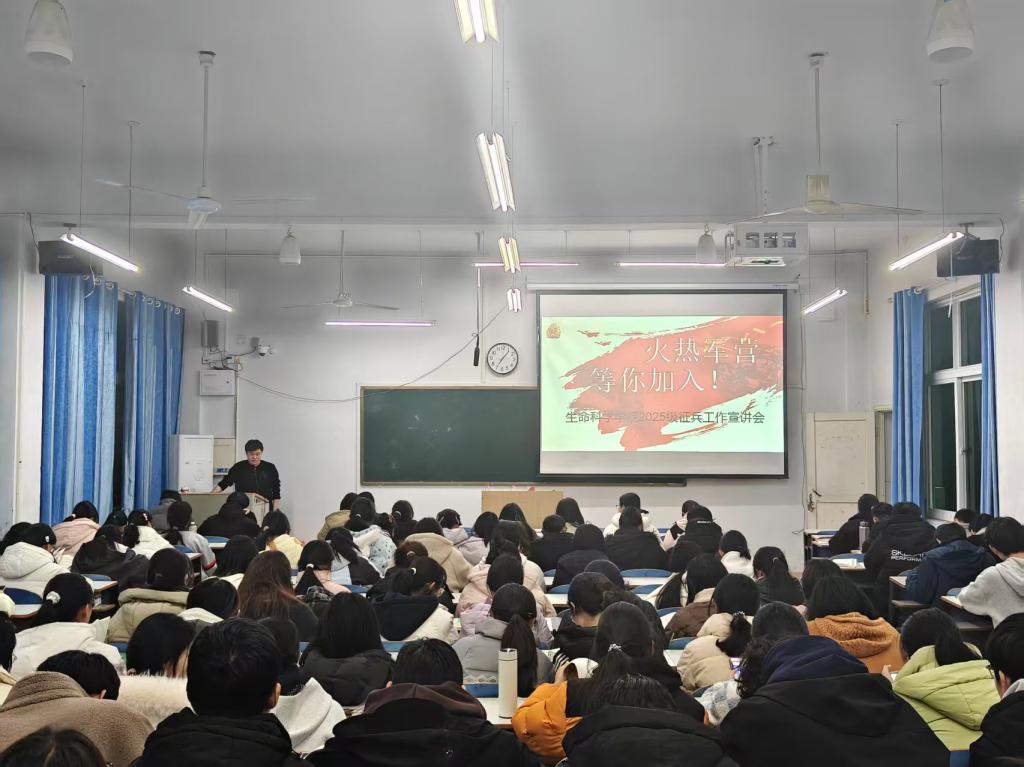 为深入贯彻国家征兵工作部署,切实落实国防教育相关要求,引导青年学子将个人成长融入国家发展大局,12月15日晚7点,我院于教九502开展2025级征兵工作宣讲会,专职辅导员张博担任主讲人,2025级全体学生参会。