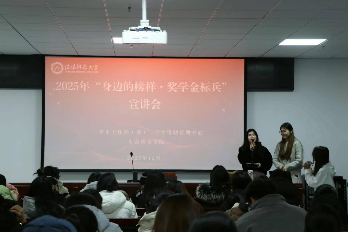 为发挥优秀学子示范引领作用,营造校园勤学争先的优良学风,为广大学子成长成才注入精神力量。12月17日下午六点半,我院于敏思楼A2-418报告厅顺利举办“身边的榜样·奖学金标兵”宣讲会,专职辅导员张博及2024级、2025级百余名学生齐聚现场,宣讲会由学院资助专员张阳阳主持。