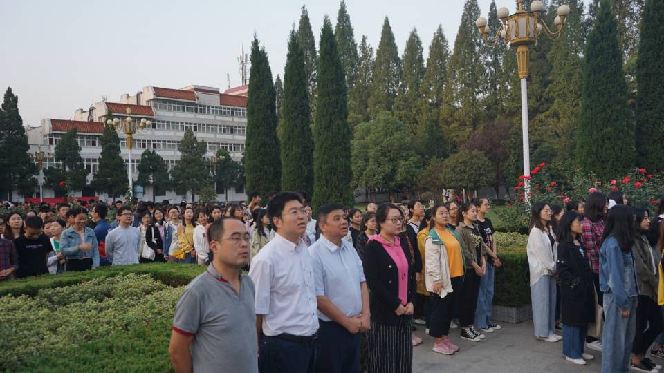 十•一的5:40,我院五个专业四个年级300余名师生代表,齐聚学校明德广场升旗区,迎着早晨的第一缕曙光,向冉冉升起的国旗行注目礼,雄壮的国歌声响彻广场,祝愿我们的祖国生日快乐、欣欣向荣。