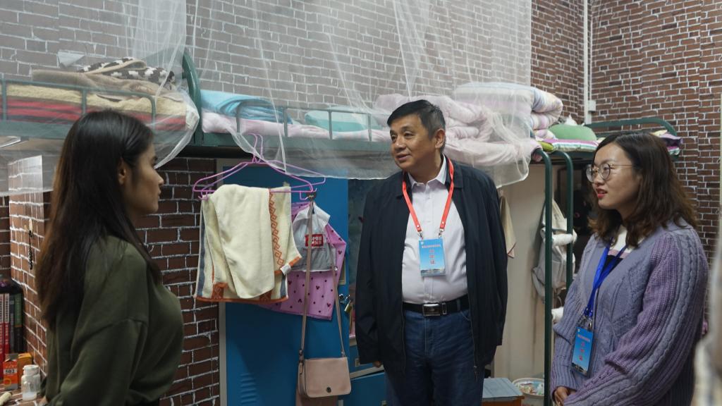 杨霁虹等深入我院大学生宿舍,与到校大学生交谈学业与困惑,查勘违禁电器,询问个别未到位学子路况。在几个优雅宿舍,了解学生离抵学校思想、家庭情况和学业现状,耐心倾听心理困惑、学业困惑,同行老师一起提出了良好建议。杨霁虹表示,学子们同处一室,情同手足,互相包容,乐于服务,学业上互帮互助,共同提高,建议养成文明的生活习惯,搞好宿舍卫生,遵守宿舍安全规定,杜绝使用违规电器,提升自我安全防护意识,防火防盗防诈骗,共同创建安全、乐学、和谐的大学生宿舍。