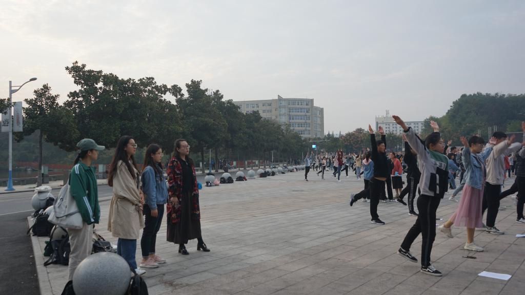 为丰富校园文化,督促增强学生体质,10月21日,我院团委书记熊蕾同部分学生干部一同检查2019级新生早操情况。