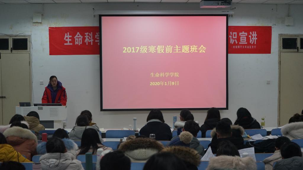 1月8日至1月9日,我院分别于教九305教室和生物楼414多媒体教室召开2019级、2017级寒假前主题班会。班会分别由相应年级专职辅导员杨娟娟、朱晓雯主持。