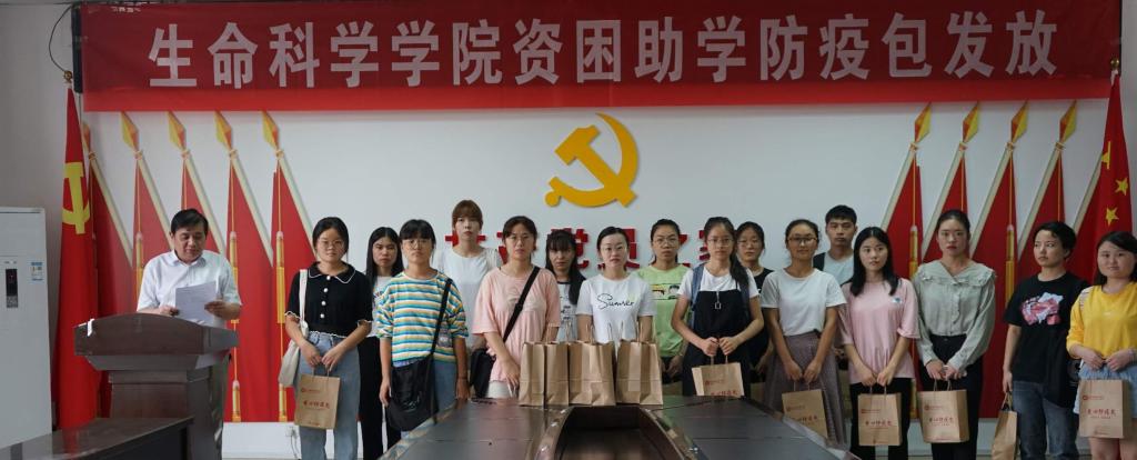 疫情防控期间,为帮助贫困学子更好地学习生活,9月17日,我院于生物楼412会议室举行了资困助学防疫包发放仪式。院党委副书记杨霁虹,团委老师朱晓雯出席,与十余名学子一同参加仪式。