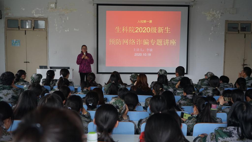 为深入贯彻网络安全教育工作,营造安全的网络环境,10月18日,我院于生物楼414多媒体教室开展了2020级新生预防网络诈骗专题讲座。该讲座由20级专职辅导员李敏主讲,我院及医学院20级新生学子共同聆听。
