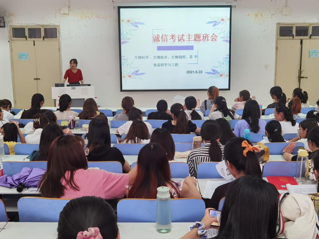 为维护考试的公正性和严肃性,创建优良考风,营造良好的诚信考试氛围,6月22日,2019级全体同学于生物楼414多媒体教室召开诚信考试主题班会。2019级专职辅导员杨娟娟主持会议。