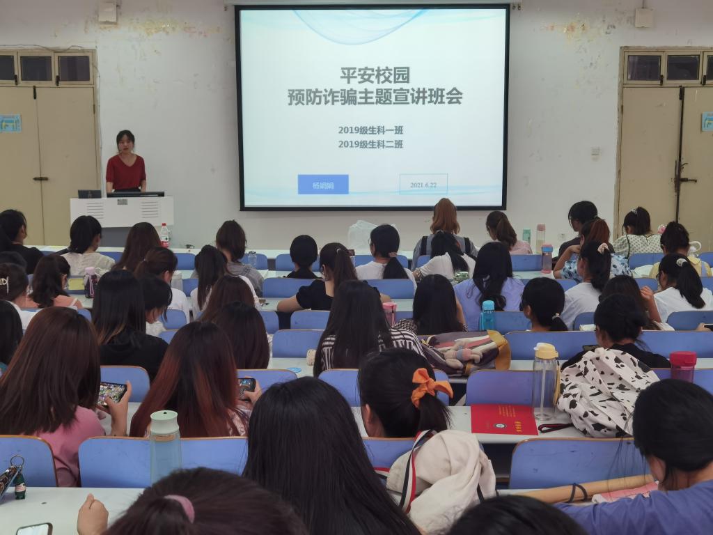 为深入贯彻安全教育工作,营造安全的校园环境,6月22日,我院于生物楼414多媒体教室召开2019级预防诈骗主题宣讲班会。该班会由19级专职辅导员杨娟娟主讲,2019级全体同学参加。