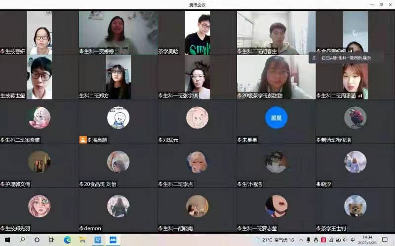 8月26日下午,我院通过腾讯会议举办线上2021届新生班级助理竞选。此次大会由潘高鹏主持,2021级专职辅导员朱晓雯,团委书记熊蕾,团委副书记朱星星,学生会执行主席潘高鹏出席会议。