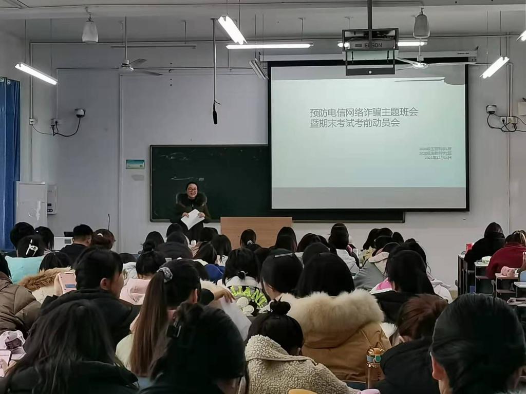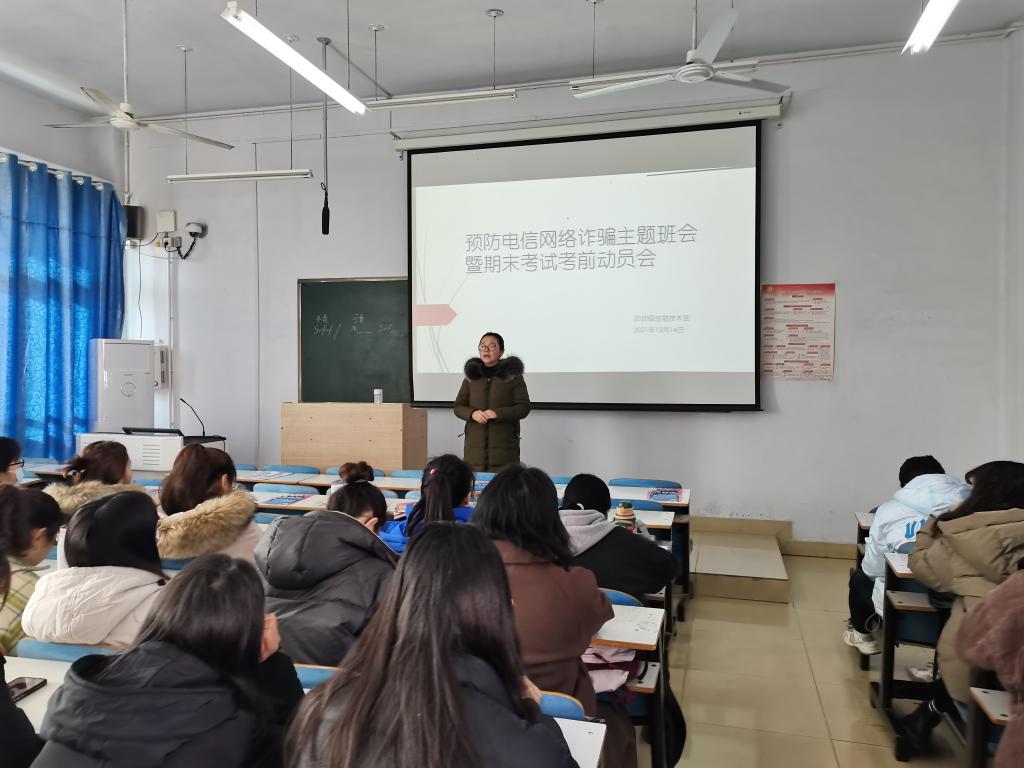 为进一步增强我院2020级学生防范网络诈骗的能力,有效遏制电信诈骗高发事态,切实保障广大学生群体的财产安全,同时在期末考试来临前,为加强学风建设,严肃考风考纪,确保教学质量,12月14日上午,我院于教九209、501分批次召开2020级预防电信网络诈骗主题班会暨期末考试考前动员会,会议由2020级专职辅导员李敏主持,2020级全体学生参加会议。