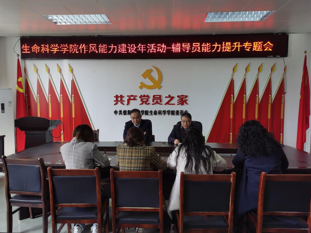 为全面提高辅导员素质能力,扎实推进学院各方面工作高质量发展,4月2日,我院在生科楼412会议室召开作风能力建设年活动之辅导员能力提升专题会,党委书记李刚、副书记荣宪举以及全体辅导员参会。