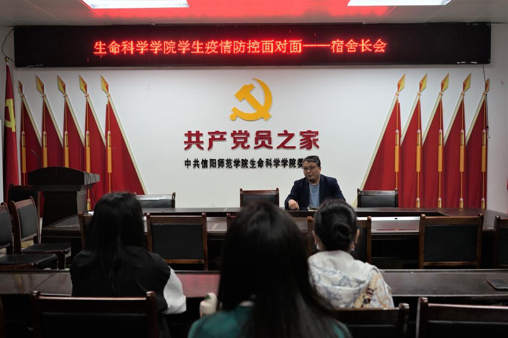 为进一步提高疫情防控期间宿舍长的责任意识,严格落实学校疫情防控政策,确保学生在校的生活安全有序,5月9日晚,我院于生科楼412召开“学生疫情防控面对面”宿舍长会,由院党委副书记荣宪举主持,院团委书记熊蕾及各年级各专业宿舍长代表参加会议。