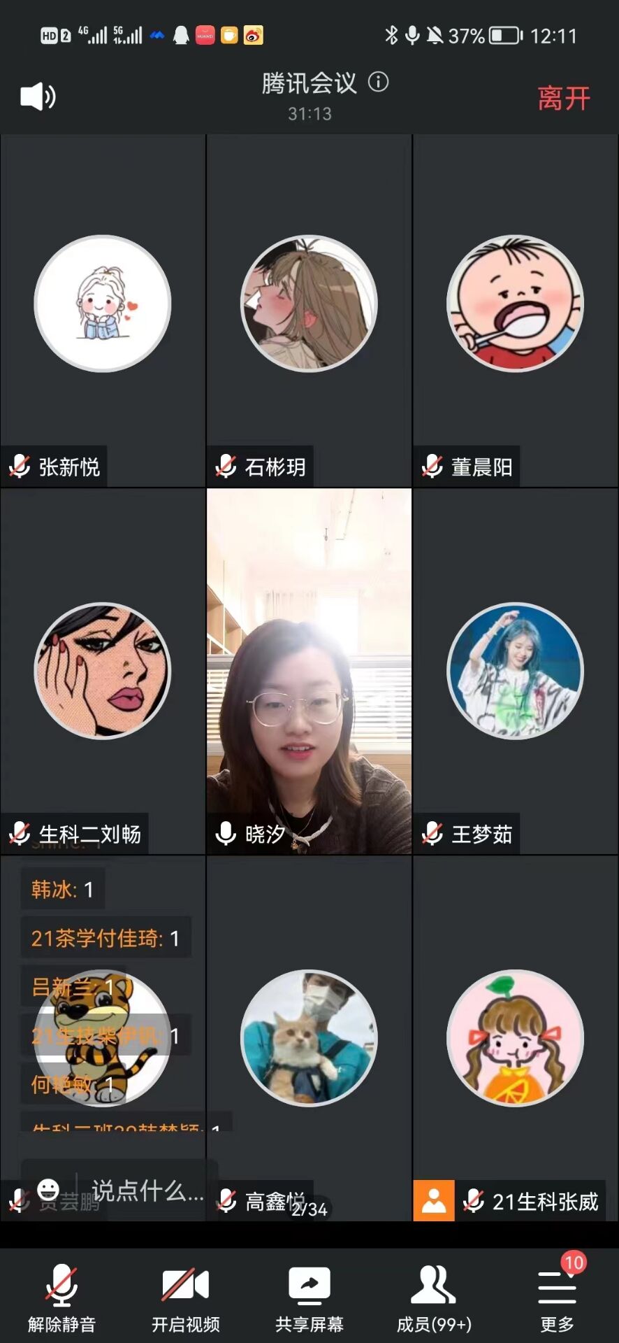 为了解学生近期安全情况,提高同学们的安全防范意识以及自我规划能力,缓解学生的心理压力,9月27日中午,我院通过腾讯会议的方式召开2021级线上主题班会,专职辅导员朱晓雯和2021级全体学生参加此次会议。会议由朱晓雯主持。