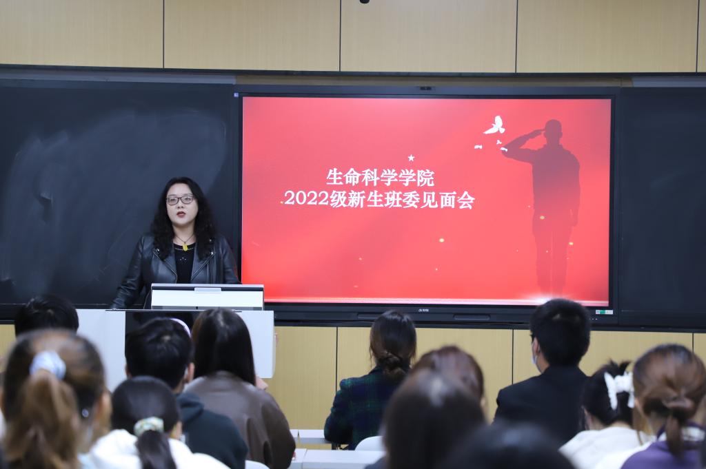 会议上,荣宪举首先表达了对各班新生班委的鼓舞与勉励,希望各班班委在四年的学习和生活中能得到全面的提升和发展,充分发挥主观能动性和先锋模范作用,做好同学们和学院、老师们的桥梁和纽带。熊蕾对2022级新生班委表达了美好的祝愿,希望各位班委要全方位地完善自己,同时也对各班班委提出了四点要求:一是要有责任心,明确职责分工、加强团队合作;二是要有主动性,牢记率先垂范,注意言行举止,主动担当作为;三是要有集体观,要处理好老师、同学之间关系,做好学院与同学之间纽带作用;四是善于时间管理,妥善处理好学习和工作的关系。各班新生班委代表自我介绍,并表示会积极做好本职工作,营造良好的班级风貌,做好老师的参谋和助手。