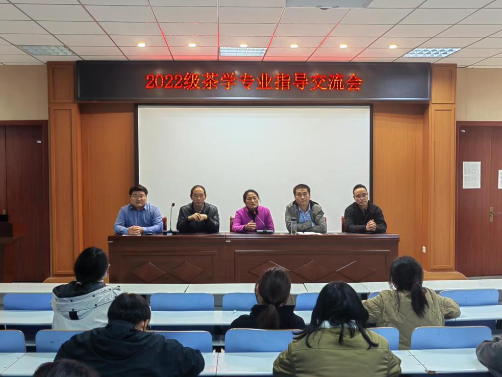 为了促进我院茶学专业的发展,加强2022级茶学专业新生对茶学专业的了解。11月18日晚,我院于生科楼414会议室召开2022级茶学专业指导交流会。会议由我院茶学系主任吴昊主持,副院长周棋赢、茶学相关教师陈明杰,袁正仿,张伟以及全体2022级茶学专业新生参加。