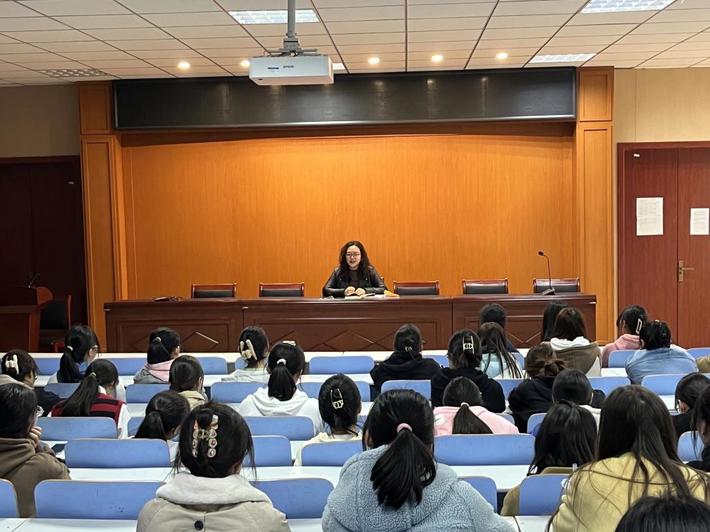 会议首先开展了安全教育部分,安全问题是第一要务。熊蕾强调了宿舍安全、道路交通安全、饮食安全,网络安全四方面内容。在宿舍,学生不能使用大功率电器,不能存放刀具、易燃易爆物品、危险化学药品,禁止私自外住,爱护寝室物品,积极配合消防安全检查;道路交通方面,学生无论在校内还是校外,骑电动车时要靠右减速慢行,尽量选择步行,遵守交通规则,并例举了相关事例;饮食方面,少吃烧烤,尽量在学校吃饭,即使是点外卖,也要选择有正规店铺的;网络诈骗层出不穷,学生一定要擦亮眼睛,不要轻易相信诈骗信息,禁止刷单,护好钱包,保护个人财产安全,谨防上当受骗。