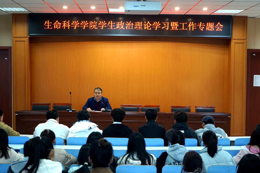 为全面学习贯彻党的二十大精神,加快构建高校特色思想政治工作体系。3月21日下午,我院于生科楼414召开了学生政治理论学习暨工作专题会。会议由院党委副书记荣宪举主持,各班班长、团支书、学生会主席团、各部部长、新媒体各部负责人、各学生社团负责人参加。