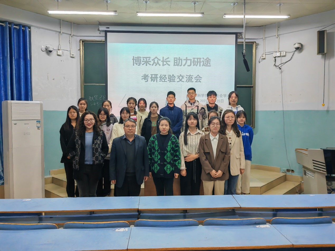 为进一步推进我院学风建设,加深学生对考研的认识,增强学生的考研斗志与信心, 4月25日晚,我院于教九楼305召开“博彩众长,助力研途”考研经验交流会。本次会议采用线上线下相结合的方式,由我院学生会学术部干事高静、肖嘉乐主持,我院党委副书记荣宪举、、分团委书记熊蕾、专职辅导员杨娟娟出席活动。