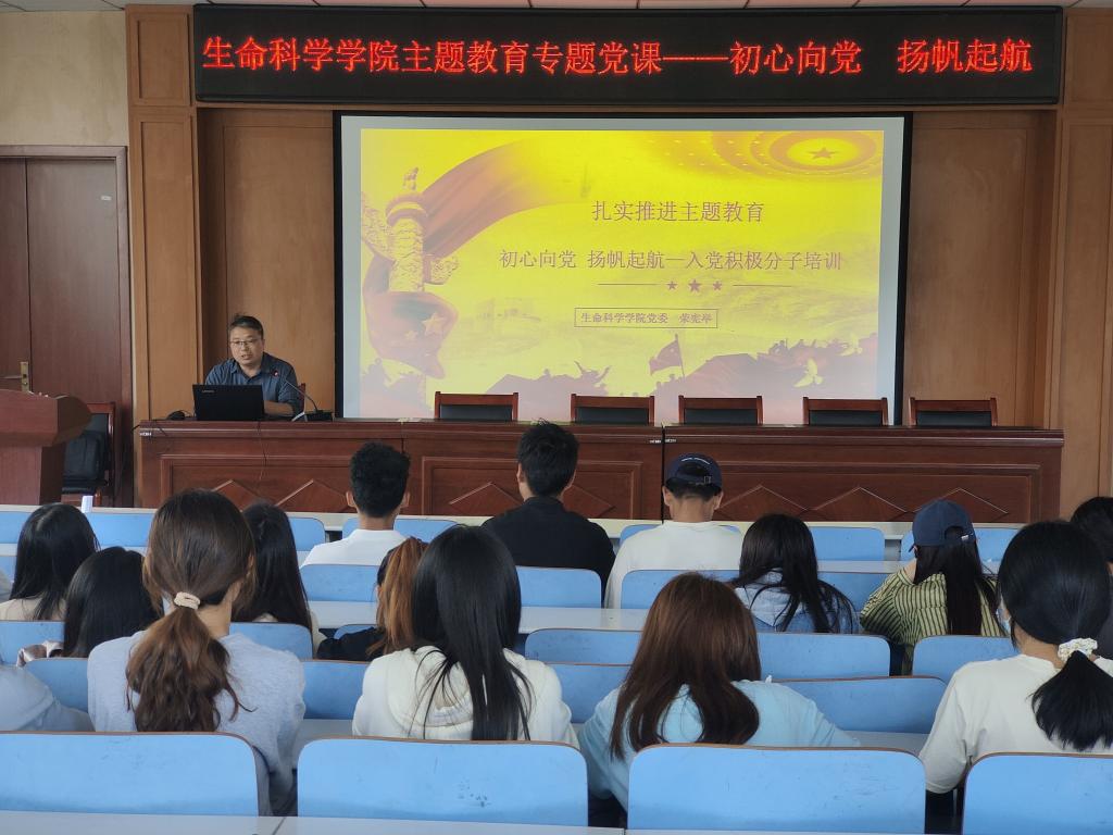 为贯彻落实党的二十大精神,扎实推进主题教育走深走实,党委副书记荣宪举于5月23日,在生科楼414报告厅为入党积极分子,开展主题教育专题党课。