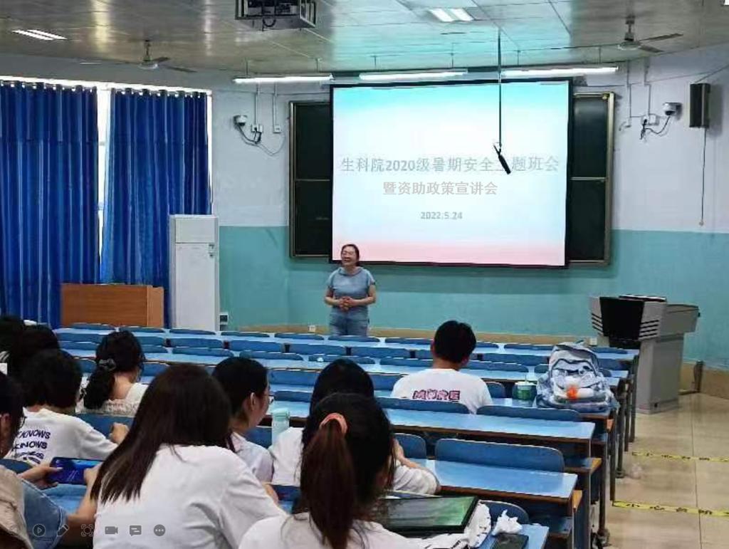 5月24日上午9点在生科楼414报告厅,生科院资助专员李敏利用课间时间为2020级学生召开了暑期安全教育主题班会和资助政策宣讲会。