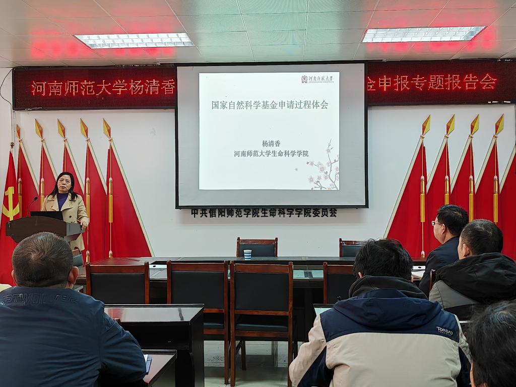11月16日,应太阳成集团122ccvip邀请,河南师范大学杨清香教授来我院指导国家自然科学基金申报工作。基金申报辅导报告会在412会议室举行。我院院长饶本强、副院长周棋赢及青年教师代表参加报告会。