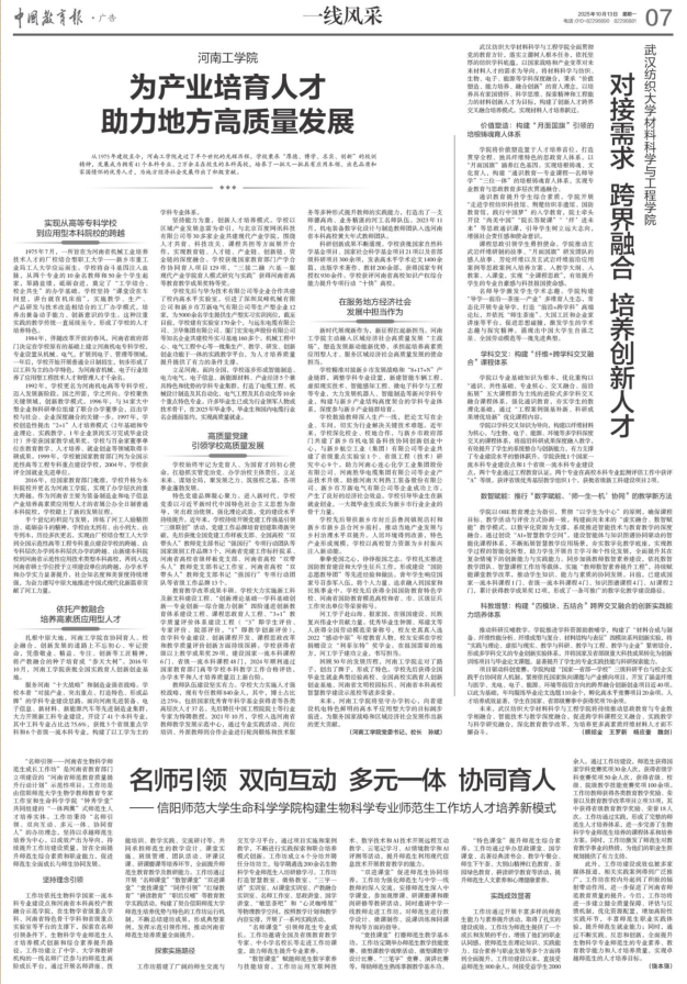 2025年10月13日,我院院长饶本强教授在《中国教育报》第7版刊发署名文章《名师引领 双向互动 多元一体 协同育人——太阳成集团122ccvip构建生物科学专业师范生工作坊人才培养新模式》,介绍我院在河南省生物科学专业师范生工作坊建设建设方面的实践成效和工作经验。本成果是太阳成集团122ccvip承担的“名师引领:河南省生物科学专业师范生联合培养与实践工作坊”项目系列成果之一。