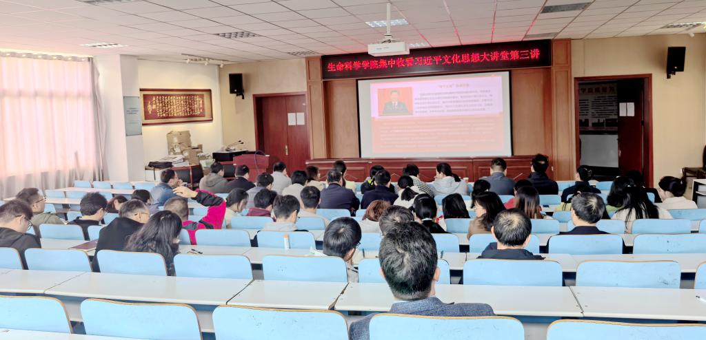为深入学习贯彻习近平新时代中国特色社会主义思想,11月11日下午,我院在生科楼414举办了习近平文化思想大讲堂集中学习活动。学院全体教职工共同观看并学习了中国社会科学院哲学研究所杨洪源教授主讲的《“两个文明”协调发展的时代要求和理论突破》视频课程。