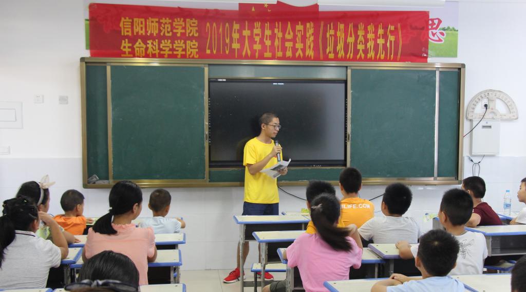 为提升未成年人环保意识,加强美丽地球建设,7月6日,我院暑期“三下乡”垃圾分类宣讲团在党委副书记杨霁虹,专职组织员孙太红的带领下前往信阳市平桥区洋河镇陆庙村小学进行宣讲。