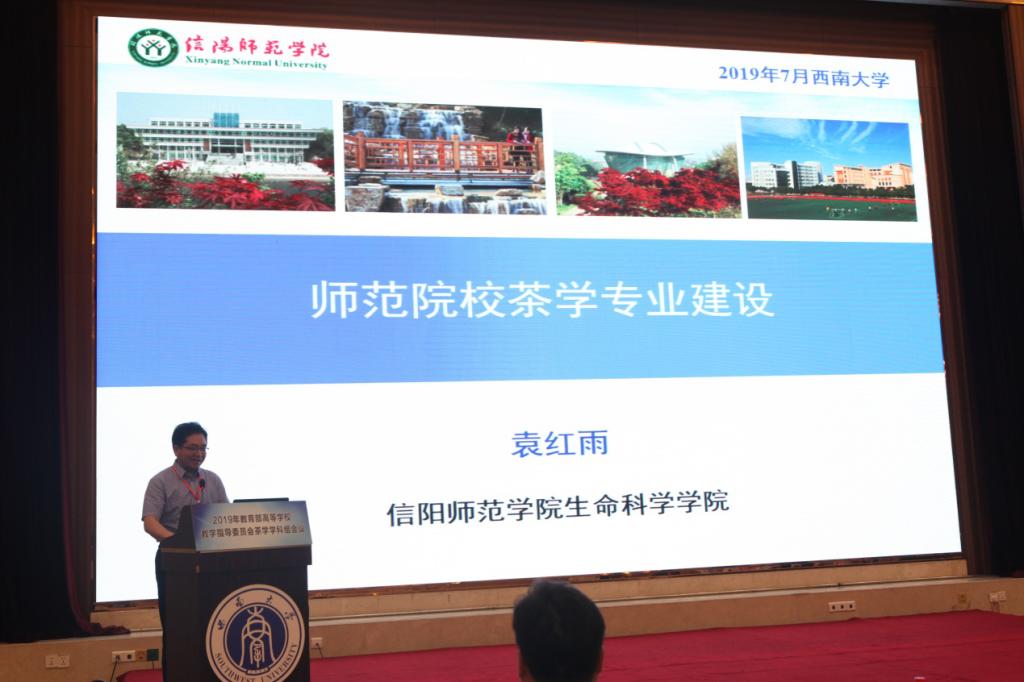 在经验交流报告阶段,袁红雨院长以“师范院校茶学专业建设”为题,向与会专家介绍了信阳师范学院茶学专业建设、茶学学科发展和河南省茶树生物学重点实验室建设情况,得到了茶学学科组专家一致好评。