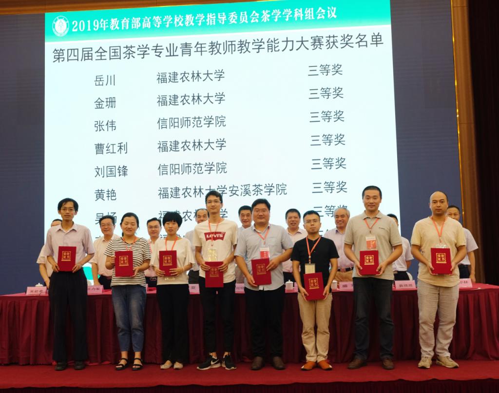 会议还开展了第四届全国高校茶学专业青年教师教学能力大赛获奖教师颁奖及视频展播,我院张伟和刘国锋两位教师分别荣获全国高校茶学教学竞赛三等奖。会议间隙,参会人员和浙江大学、华中农业大学、西南大学等高校交流了茶学人才培养、茶学专业稳定、茶学太阳成集团等做法和经验。参会人员还参观考察了西南大学茶厂、西农茶叶有限公司和南川大茶树资源等。