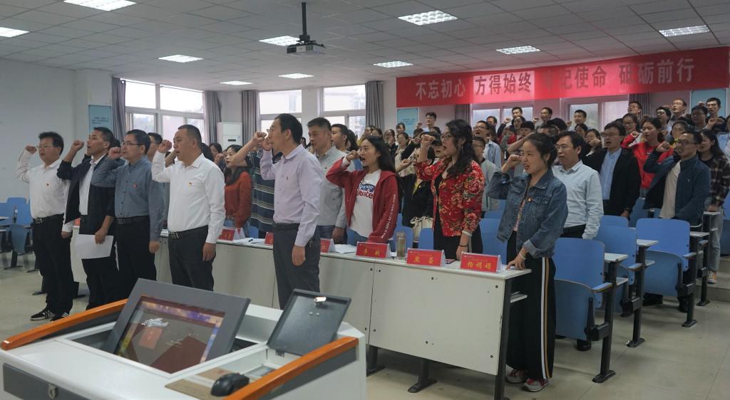 仪式上,学院党委委员、院长袁红雨首先传达了学校“不忘初心 牢记使命”主题教育动员部署会精神,并要求学院全体师生党员端正思想态度,严格按照学校党委要求参加本次主题教育,确保此次主题教育深入扎实开展,取得切实成效。随后,学院党委书记李向阳作动员讲话,他指出,本次教育活动主题鲜明,任务艰巨,希望各支部和全体党员紧紧围绕教育活动主题,扎实开展各项工作,把中央、省委部署和校党委要求落实到位,以良好的精神状态和工作作风确保主题教育取得实实在在的效果。最后,李向阳还宣读了《中共信阳师范学院太阳成集团122ccvip委员会“不忘初心、牢记使命”主题教育实施方案》,对主题教育进行了精密安排部署。