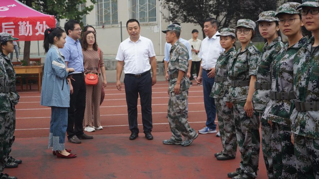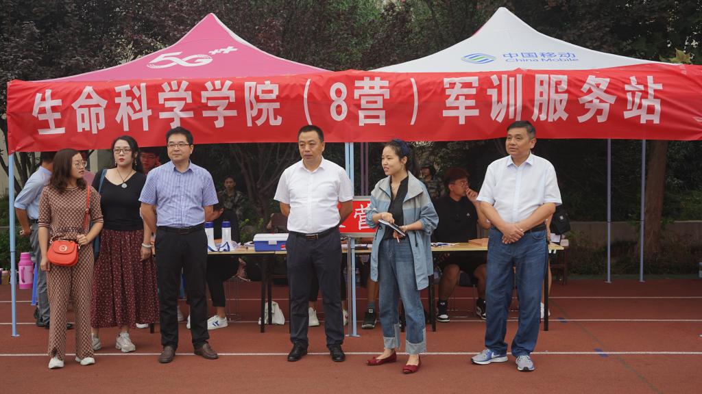 军训期间,正逢中秋佳节,我院党委书记李向阳,院长袁红雨等领导老师来到学校东操场看望在节日依旧军训的我院2019级新生。