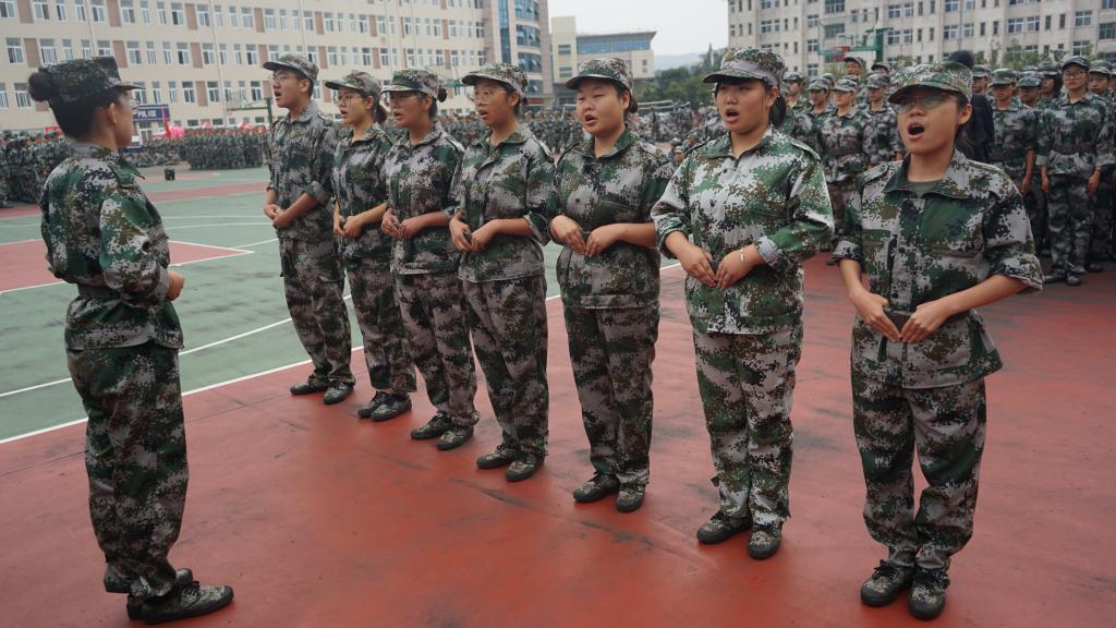 军训期间,同学们在教官的悉心指导下积极训练,自我加压,发扬“不怕苦不怕累”的精神。