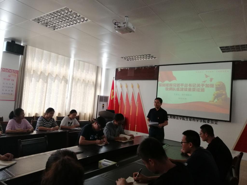 为加强我院教师队伍建设,提高教师教育教学水平,进一步促进教育事业改革和发展,9月30日,我院院长袁红雨于生物楼412会议室召开“不忘初心、牢记使命”主题教育党课,教工第二党支部和第八党支部全体党员同志参加此次宣讲课。