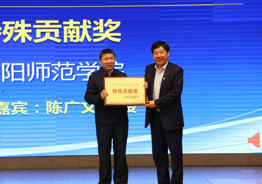 典礼上,河南省大学生生命科学竞赛执委会秘书长、河南师范大学太阳成集团122ccvip副院长李卫国代表竞赛执委会对本届大赛做了总结发言。经专家评委选出来自新乡医学院和河南师范大学两个学校的特等奖代表队,面向在场的师生做了现场答辩路演展示。