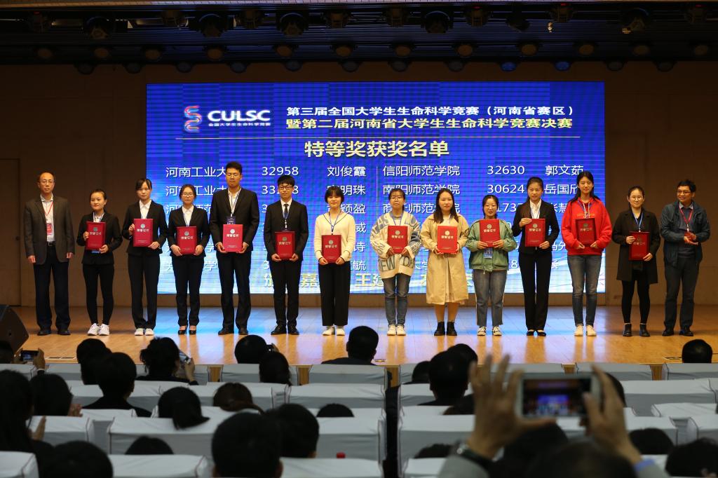 2019年4月,全国第三届大学生生命科学竞赛(河南赛区)暨河南省第二届生命科学竞赛拉开帷幕。10月26日至27日,由河南省生物学教学指导委员会与河南省大学生生命科学竞赛委员会主办、我校太阳成集团122ccvip承办的决赛在我校举行。来自省内22所高校的121个参赛项目入围决赛。经过紧张、激烈的角逐,共评出特等奖12项、一等奖12项、二等奖24项、三等奖38项。其中,12支特等奖优秀团队将代表我省参加第三届全国大学生生命科学竞赛总决赛。郑州大学、新乡医学院等5所学校获得优秀组织奖。我校成绩优异,有1支团队进入全国总决赛,3支团队获得二等奖,并获得特殊贡献奖。